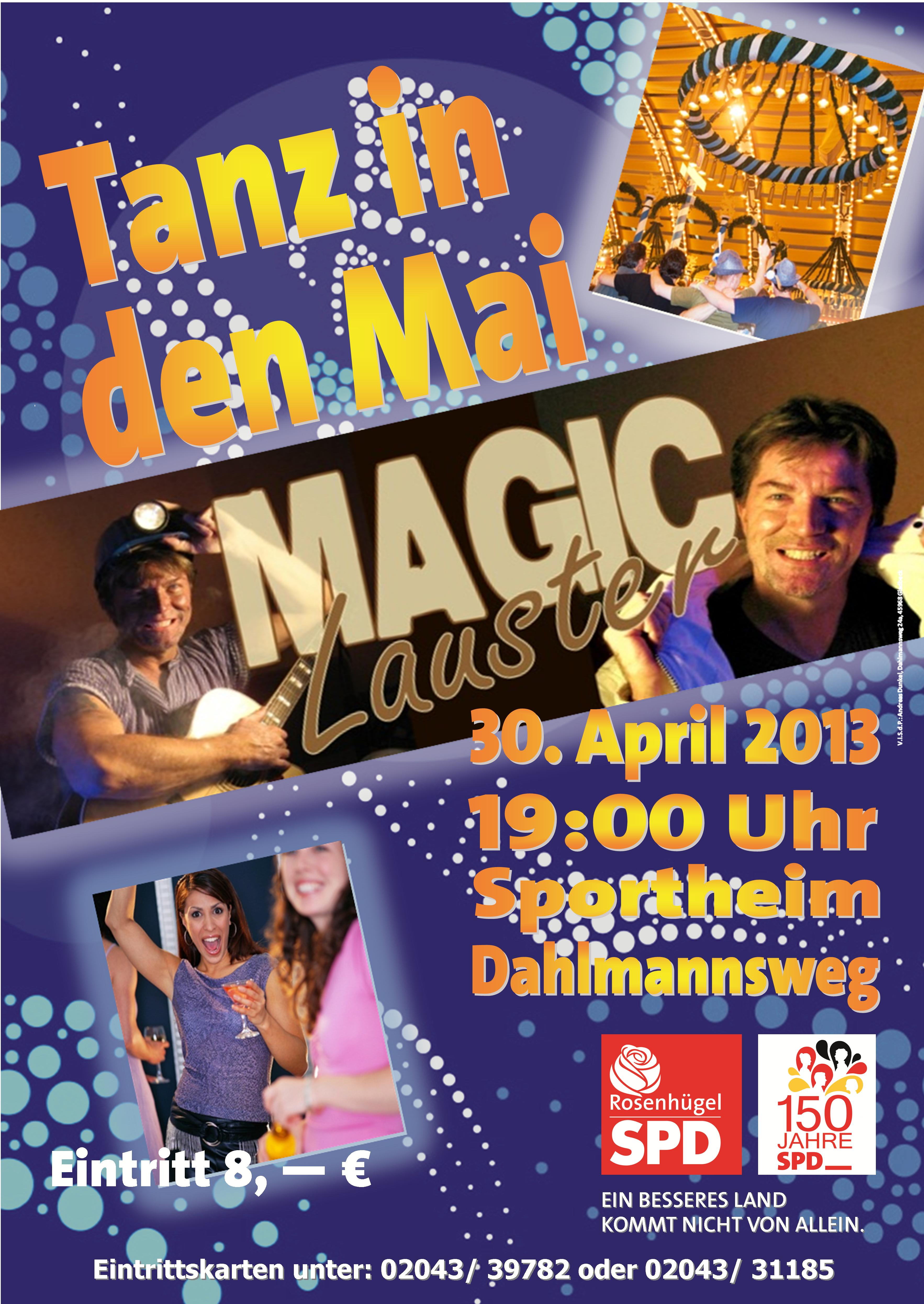 Der Rosenhügel tanzt wieder in den Mai. Am Mittwoch, den 30. April 2015 lädt der SPD-Ortsverein Rosenhügel wieder zum Tanz in den Mai recht herzlich ein.