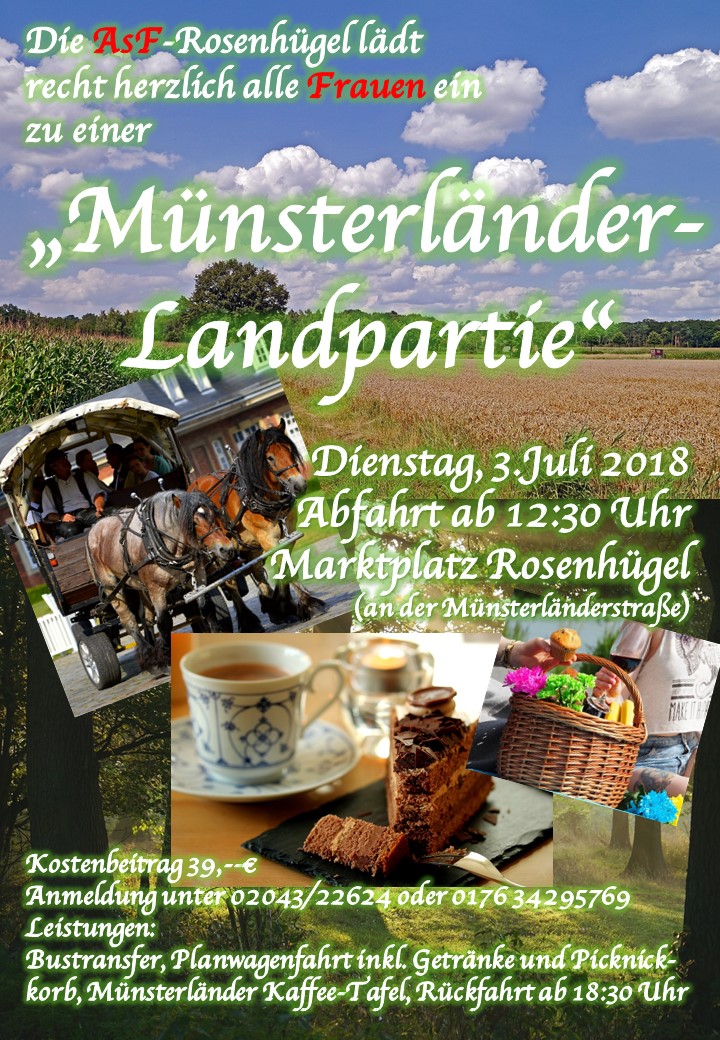 Rosenhügel | Die Rosenhügeler Arbeitsgemeinschaft sozialdemokratischer Frauen (AsF) veranstaltet am Dienstag, den 3.Juli 2018 eine „Münsterländer-Landpartie für Frauen“.